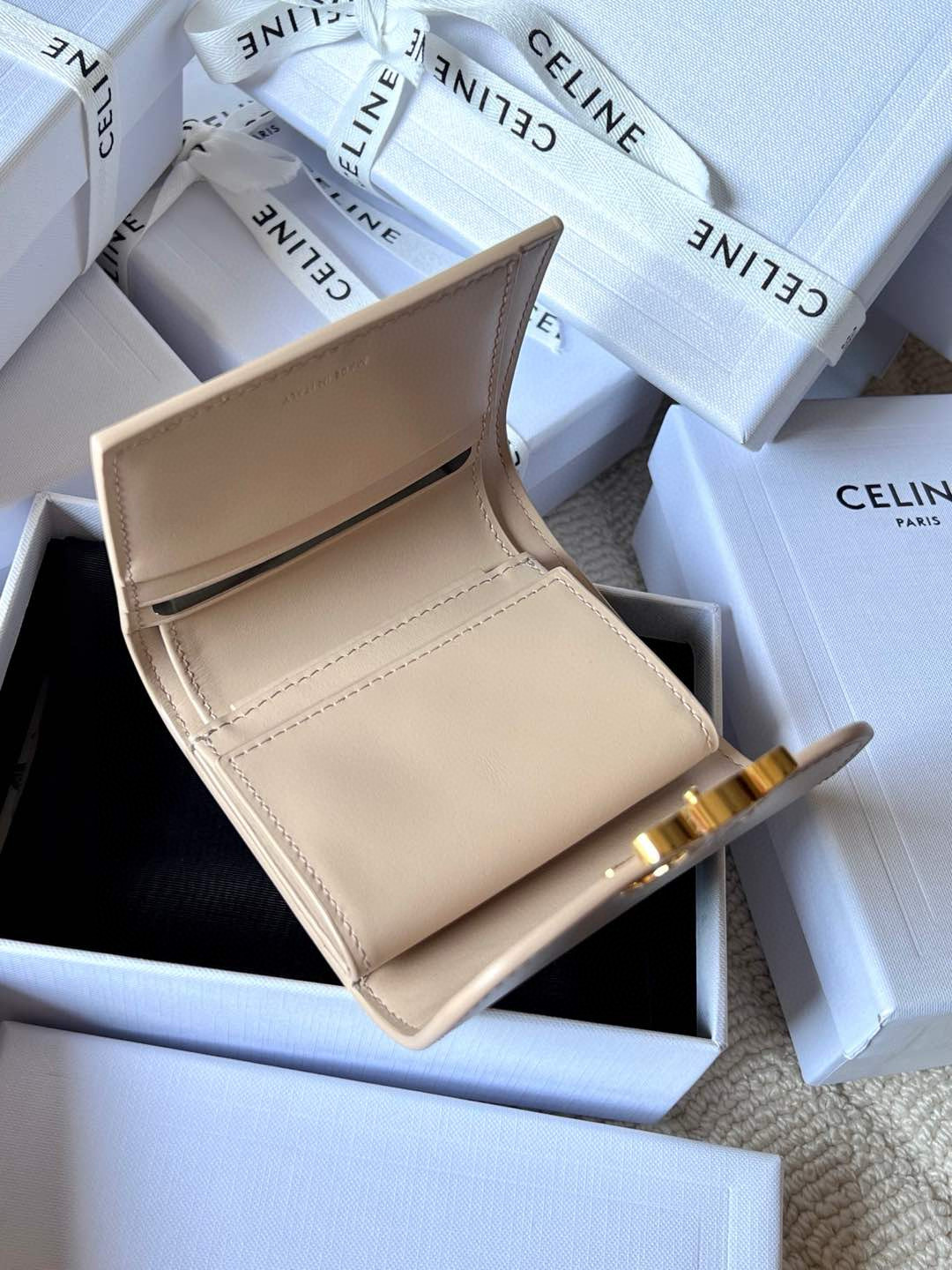 Despite its petite size, it opens to reveal smart compartments for cards, bills, and coins—proving that style never compromises function. Whether tucked into your favorite designer bag or carried solo for a night out, this wallet is your everyday dose of quiet luxury.