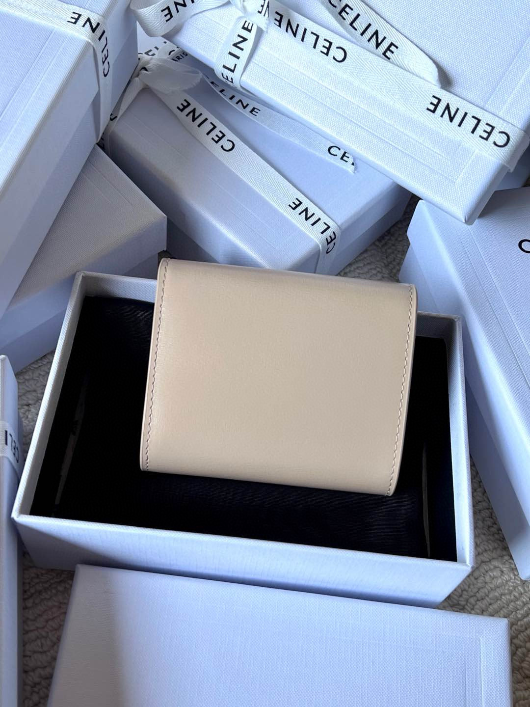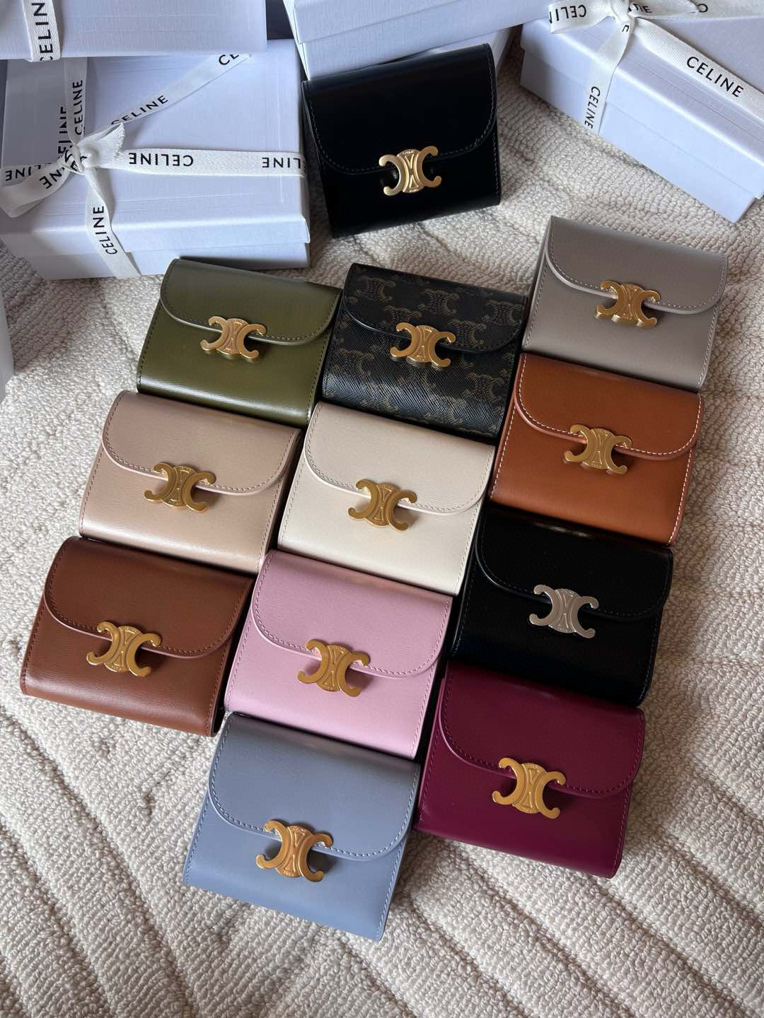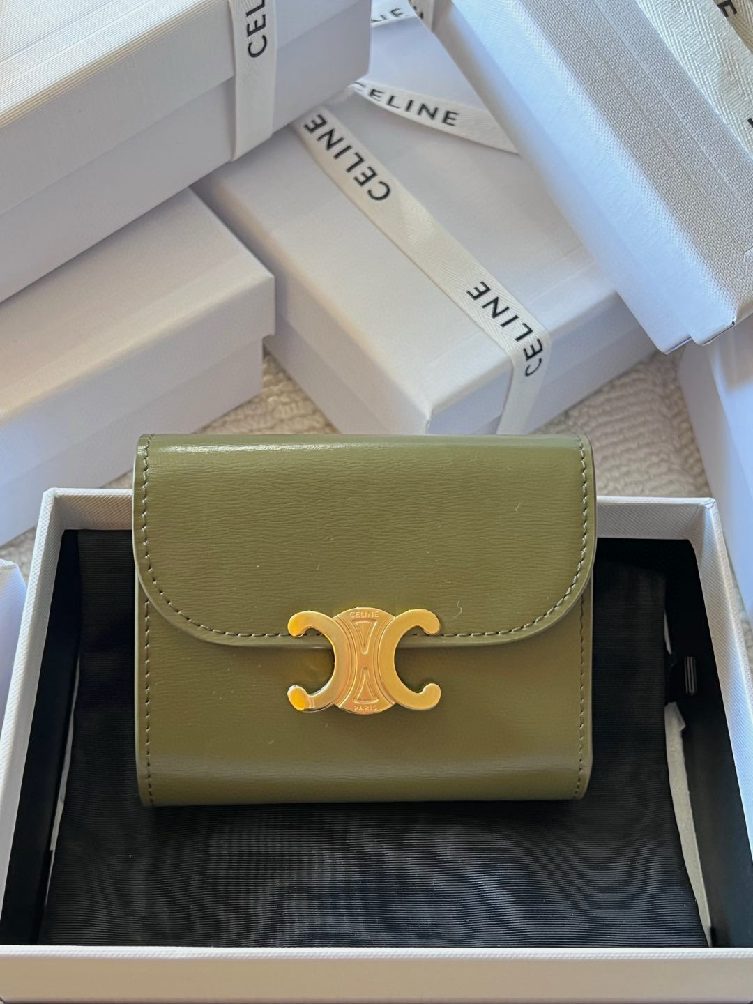 Small Flap Wallet Triomphe. Authentic quality luxury bag crafted in genuine leather comes with authenticity card, dust bag and gift bag. Small in Size, Grand in Style.